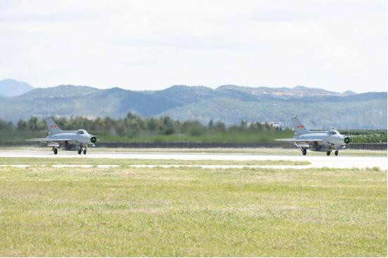 第一批次飞行训练结束战机滑行至机位